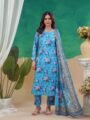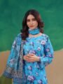 Shirt: Premium Doriya lawn in a refreshing bright blue tone with elegant floral print and subtle lace detailing for a lively summer feel