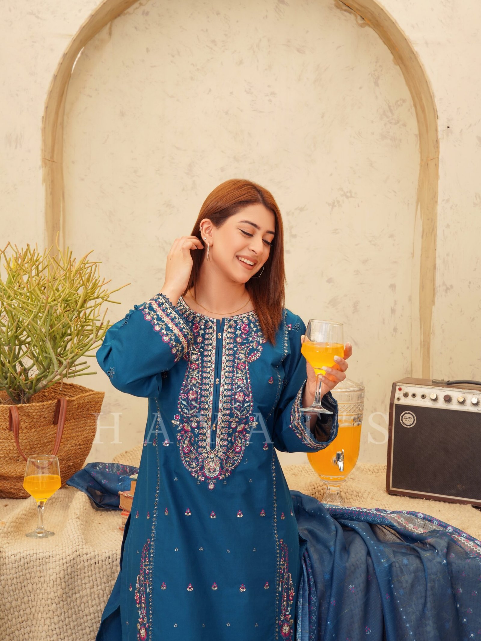 Shirt: Premium fabric featuring intricate Tila & Multi Thread Embroidery with a delicate Sequence shimmer for an elevated festive look