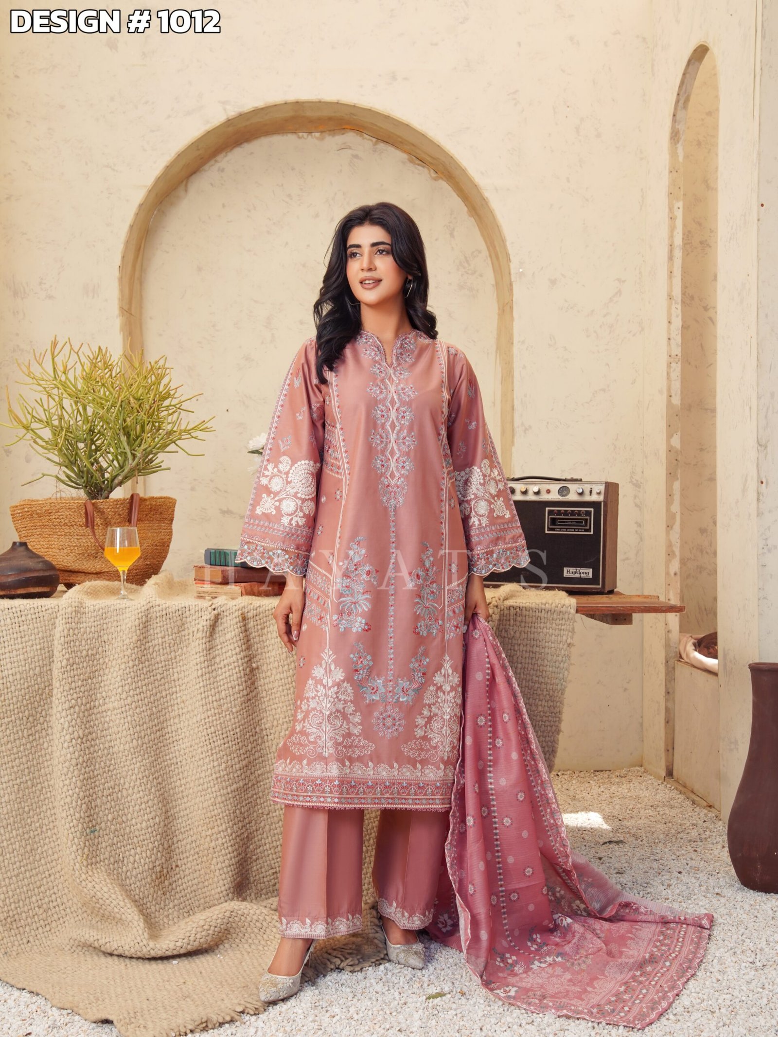 Shirt: Premium fabric featuring intricate Multi Thread Embroidery floral motifs across the front and gala, accented with delicate lace finishing on the sleeves and daman.