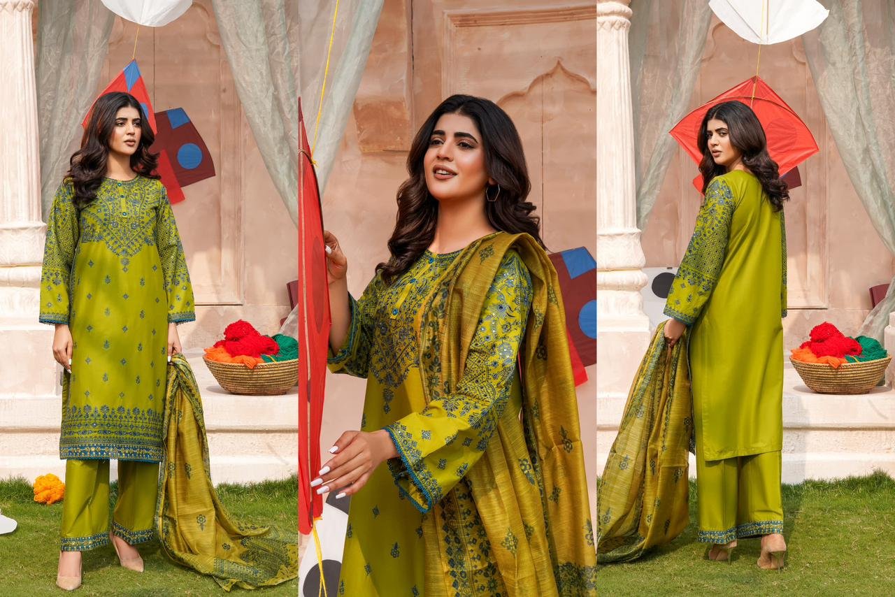 Dupatta: Paired with a luxurious Bana Dora Tila Digital Dupatta featuring metallic accents and a coordinated digital print.