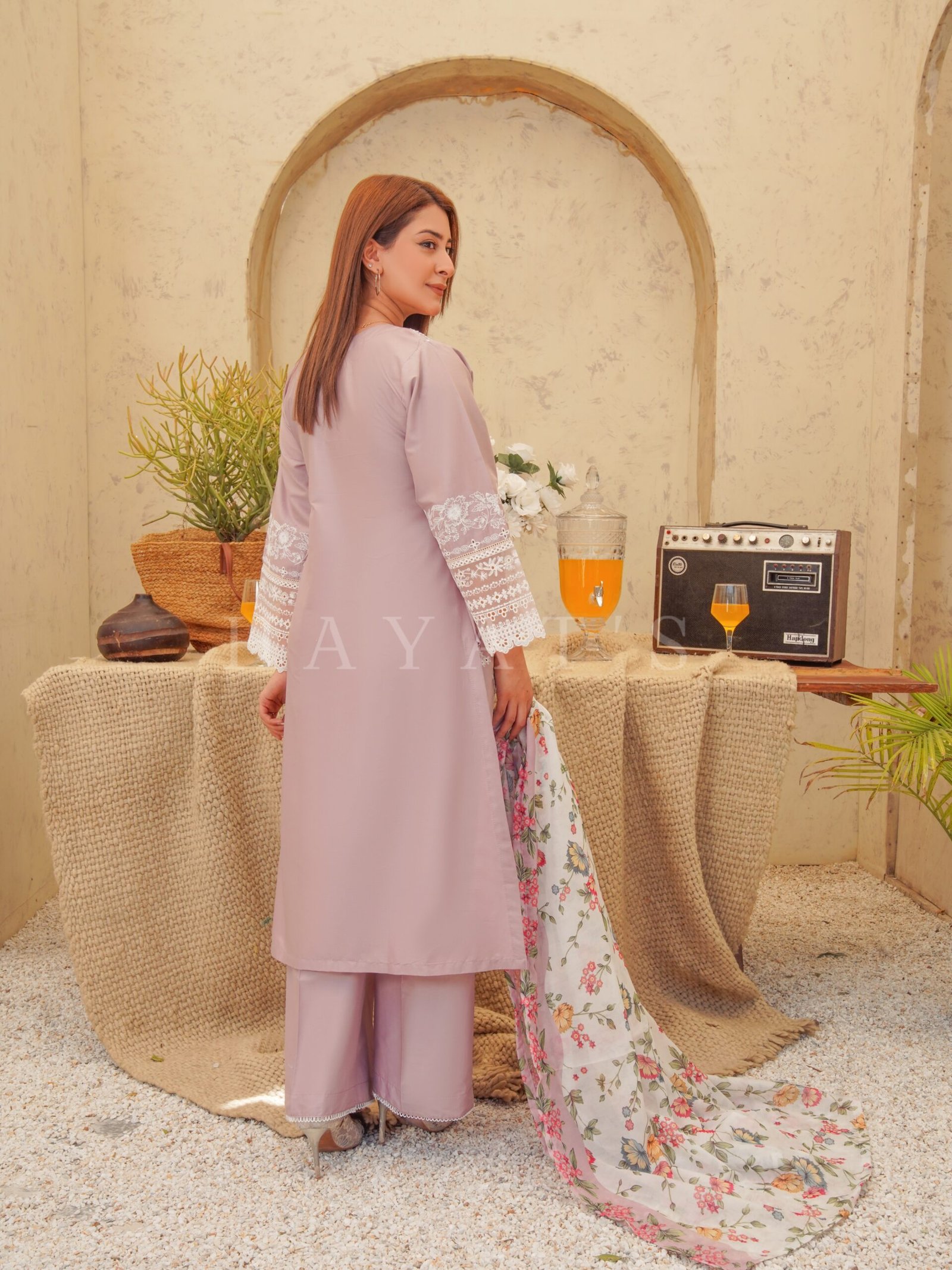 Dupatta: Paired with a high-quality Medium Silk Digital Dupatta featuring a vibrant floral print and a soft, luxurious feel.